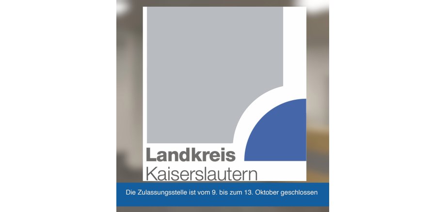 Die Kfz-Zulassungsstellen von Stadt und Landkreis Kaiserslautern sind von Donnerstag, 09.10. bis einschließlich Montag 13.10.2025 aufgrund einer notwendigen Umstellung der Systemsoftware für den Publikumsverkehr geschlossen. Wir bitte um entsprechende Beachtung und Verständnis.