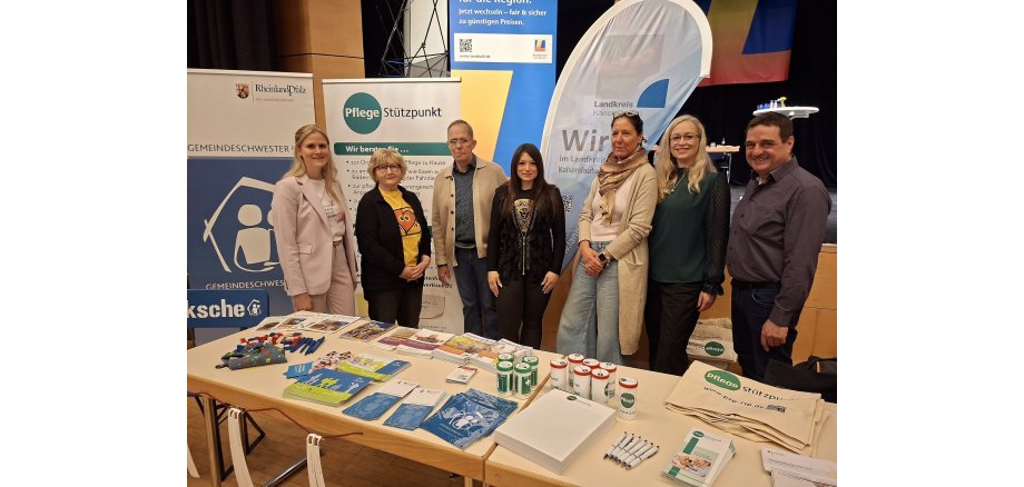 Die Kreisverwaltung war mit mehreren Ständen in der Stadthalle vertreten: Heike van Lier von der Betreuungsbehörde und Sabrina Dejon vom DRK-Betreuungsverein Kaiserslautern-Land in Landstuhl informierten über Vorsorgevollmachten und Betreuungsverfügungen und sensibilisierten dafür, sich möglichst frühzeitig mit diesen Themen zu befassen. Der Pflegestützpunkt Landstuhl mit Wolfgang Stemler stand für Fragen rund um Pflege und Antragstellungen zur Verfügung und machte Besucher auf die Notfalldose aufmerksam. Nicole Jörg vom Netzwerk Demenz Kaiserslautern Stadt und Landkreis bot mit einem Demenzparcours einen Einblick in die Lebens- und Gefühlswelt von Betroffenen.